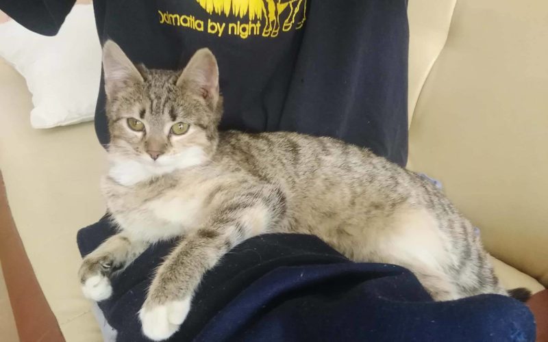 Kocourek – poloperšan, nalezený sražený v příkopě. Měl čerstvou zlomeninu nohy + několik dalších starých zlomenin. Po zdárné operaci, čeká na nový domov.