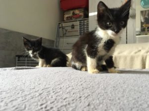 Už se o nás rozkřiklo, že zachraňujeme kočičky a tak se tito dva malinkatí kocourci rozhodli, že nás požádají o pomoc. Našli se na šachtě ve Sviadnově. Jsou to dva malí klučíci, odhadem cca 2 měsíce. Jeden kocourek měl na krku velkou bouli, která mu byla odstraněna. Momentálně jsou oba v léčení, po doléčení mohou odejít do nového domova. Budou odčervení, odblešení a vyšetření na kočičí nemoci.