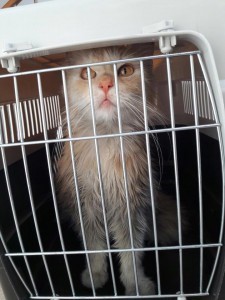 Kočička ošetřena pipetou Advocate, nyní se provádějí krevní testy.