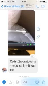 Nalezený sražený kocourek se zlomenou čelistí a zlomenou zadní nožkou. Momentálně po zdárné operaci a čekající na nový domov.