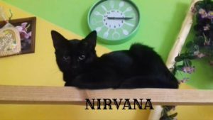 Jedno ze čtyř koťat, které pobíhalo mezi auty na hlavní cestě v Místku. Sourozenec Nikity. Podařilo se nám i ji odchytit a přestože vrčela jak pes, nebyla tak zuřivá jako Nikita. Nirvana není ani tak drzá, je opatrnější, nesmělá, ale i ona u Aničky získala alespoň malou důvěru v lidi. Ráda pozoruje okolí, občas si přijde pro pohlazení, krásně se učí vedle člověka žít. Potřebuje ovšem trochu více času.. Nirvanu nesmíte do ničeho nutit, je citlivější. Musí vás prostě jen více poznat. Z divokého a naštvaného kotěte vyrostla krásná kočičí slečna, která nemá ve vrnění konkurenci. Je to taková malá chlupatá vrtačka.. S kočkami vychází skvěle, je kastrovaná. Na své doma čeká v dočasné péči v Kopřivnici. Neposedné tlapky z.s.