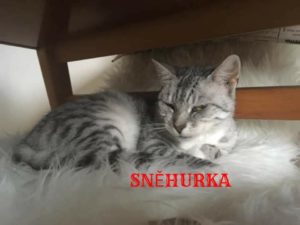 Stříbrná Sněhurka, byla nalezena v Ostravě Polance. Měla bulku na prsní žláze, ta byla odstraněna a dle histologického vyšetření je vše OK. Sněhurka našla svůj domov ♥