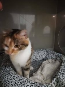 Dvouletá kočička nalezená v Místku na parkovišti. Testy na FIV, FELV a PANLEO jsou negativní. Je po kastraci. Nyní je v dočasné péči, kde má kočicí kamarády. Řádí spolu po celém bytě jako tornádo. Má tam i psí (ne)kamaráku, před kterou se raději schová pod postel. Občas se lekne i nás a peláší div ji nohy stačí. Je malinko plašší, ale neskutečný mazlík. Stačí si jen dřepnout, zavolat na ni a v mžiku ji máte u sebe ležící s vyšpuleným pupíkem.