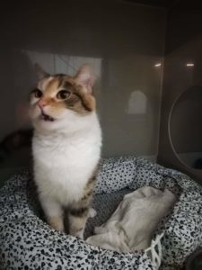 Dvouletá kočička nalezená v Místku na parkovišti. Testy na FIV, FELV a PANLEO jsou negativní. Je po kastraci. Nyní je v dočasné péči, kde má kočicí kamarády. Řádí spolu po celém bytě jako tornádo. Má tam i psí (ne)kamaráku, před kterou se raději schová pod postel. Občas se lekne i nás a peláší div ji nohy stačí. Je malinko plašší, ale neskutečný mazlík. Stačí si jen dřepnout, zavolat na ni a v mžiku ji máte u sebe ležící s vyšpuleným pupíkem.